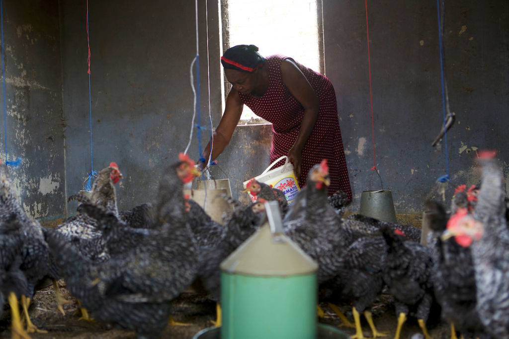 In these two examples below, both the background and foreground have been used effectively to help tell the story. The first is an empowering shot of a woman heading away from an impressive building where she’s just had a meeting. The second uses the chickens in the foreground to help tell the farmer’s story.
