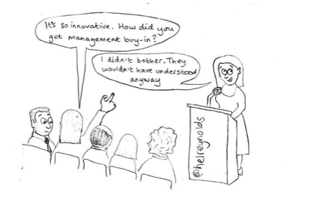 Caption: The ever-brilliant Helen Reynolds (NB we did get management buy-in).