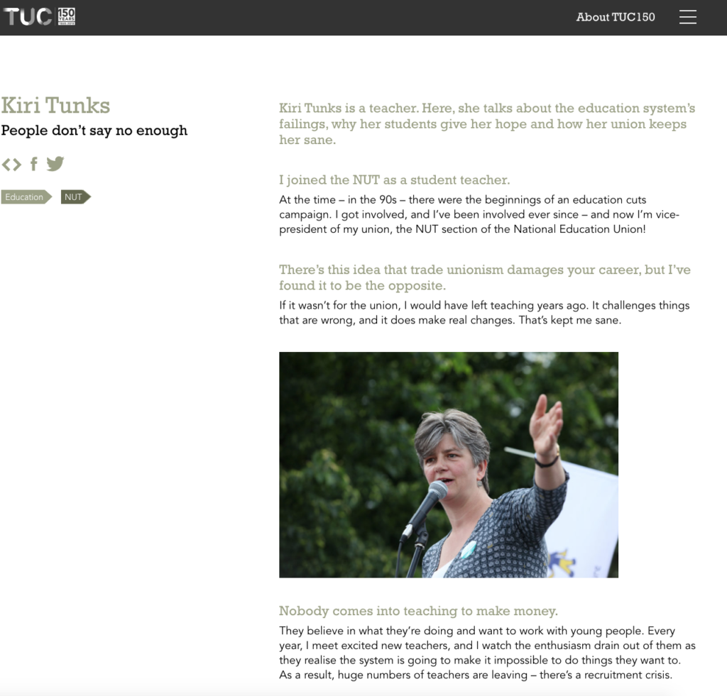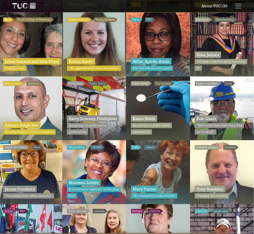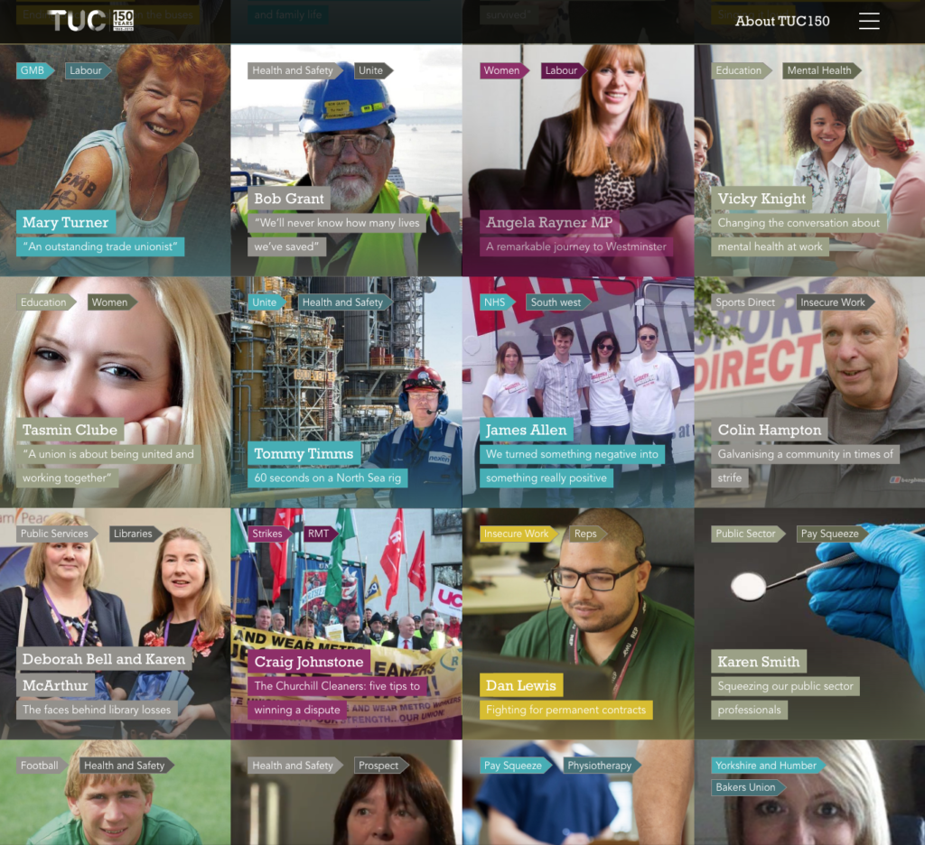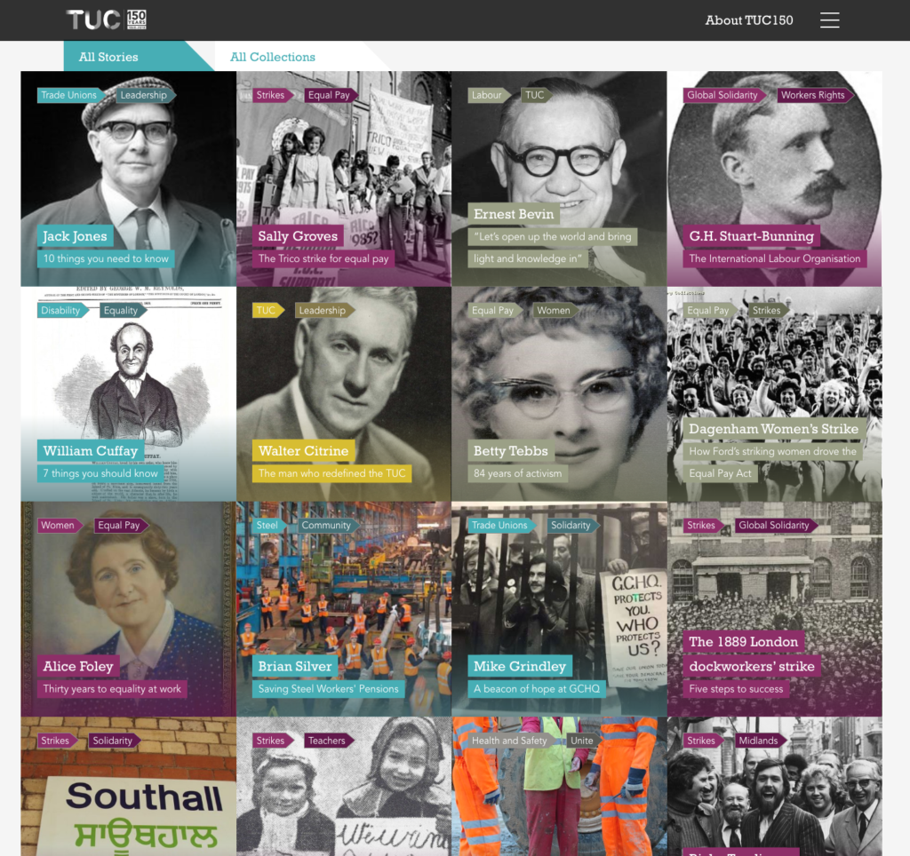 In 2018 the TUC turned 150 and wanted to mark this special anniversary with a look back on its history and a celebration of the extraordinary achievements of trade unionists. As part of the TUC 150 project we were commissioned to produce 150 stories of the trade union movement that would surprise, move and inspire.