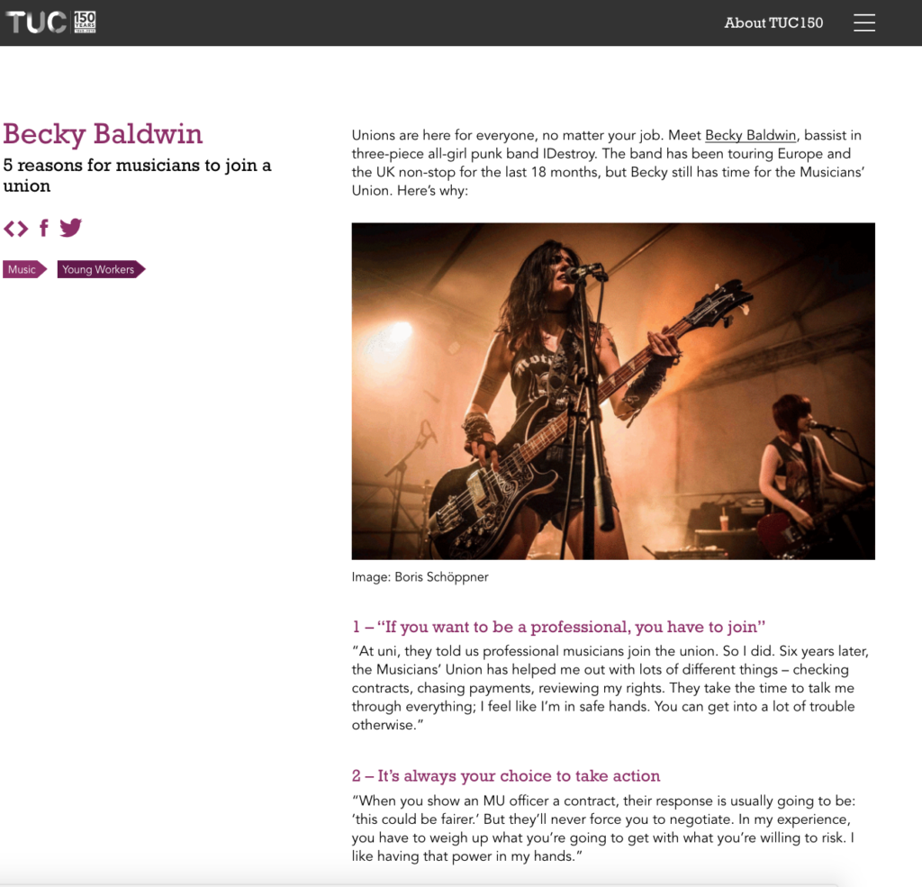 Our work for the TUC has continued and in 2022 we produced a set of strike success stories for the new Solidarity Hub, a resource hub that supports unions to make a success of their campaigns and disputes.